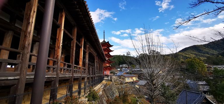 Der Tag beginnt früh. Nach dem Frühstück fahren wir direkt los zum Sumiyoshi Thaisha Shinto Schrein. Ausser ein paar Gläubiger sind wir die ersten Besucher. Wir spazieren durch die Anlage, für einmal ohne Touris rund herum. Nach dem ruhigen Spaziergang fahren wir weiter zum Osaka Castle. Hier sind wir nicht mehr allein, obwohl die Anlage kurz vorher geöffnet hat. Wir können jedoch rein ohne lange Warteschlange. Da das Castle jedoch abgebrannt ist, werden wir hier etwas enttäuscht. Inzwischen ist es eher ein neueres Geschichtsmuseum mit einer Aussichtsplattform mit schönen Sicht auf Osaka. Wir verweilen nicht allzu lange und fahren weiter nach Kyoto, unserem eigentlichen heutigen Ziel. Um die Mittagszeit sind wir beim Kiyomizu-dera Tempel. Die Strassen sind vollgestopft mit Menschen, allen voran vielen Japanern. Es ist nicht ganz einfach, sich einen Weg zur Tempelanlage zu bahnen. Der alte historische Tempel, welcher angeblich im Jahr 778 eröffnet wurde, gehört zum Weltkulturerbe. Die Anlage ist erhöht über Kyoto, man hat eine schöne Sicht auf die Stadt. Anschliessend besuchen wir den Sanju-san-gen-do Tempel, der auch als der Tempel der 33 Räume bekannt ist (Sanjusan bedeutet 33 auf Japanisch); sein offizieller Name lautet Rengo-In. Die Halle des Tempels ist die längste Holzkonstruktion Japans und besteht aus 35 Säulen, welche das Gebäude in 33 Teile unterteilen. Im Innern finden wir Konnichiwa zu tausendundein Kannon Statuen allesamt aus Holz mit einem goldenen Anstrich. Sehr beeindruckend. Im Anschluss fahren wir zum Kinkaku-ji, dem Goldenen Tempel. Diese Tempelanlage ist wunderschön in die Natur eingebettet und in seiner goldenen Farbe sehr schön. Im späteren Nachmittag fahren wir weiter nach Arashiyama. Auch hier sind die Strassen ganz schön vollgestopft, wir spazieren durch den Bambuswald und sind schwer beeindruckt. Die Tempelanlage Tenryu-ji sehen wir uns von den Gärten aus an, diese gehören ebenfalls zum Weltkulturerbe. In einem der japanischen Restaurants entlang der Einkaufsmeile gönnen wir uns eine typisch japanische Mahlzeit; es gibt Ramen mit Tempura. Es wird schon langsam dunkel, als wir uns zur letzten Tempelanlage, der Fushimi Inari Taisha Schrein aufmachen. Der Spaziergang durch die Anlage ist bei der abendlichen Beleuchtung sehr beeindruckend, den Weg entlang der tausenden Tori, dem roten Toritunnel ist ein unvergessliches Erlebnis, wenn wir auch nicht ganz bis hinauf zum Berg Inari laufen. Inzwischen ist es Nacht und wir fahren mit unserem „Fred“ zurück nach Osaka. In Osaka machen wir noch Halt im bekannten Distrikt Dotonbori. Hier gibt's ein Kaffee mit Dessert und wir schauen dem Treiben auf der Strasse und dem Kanal zu. Alles ist hell erleuchtet durch die vielen LED Fernseher an den Fassaden. Es ist kalt aber sehr interessant, wir verweilen in den Strassen und geniessen das Ambiente.