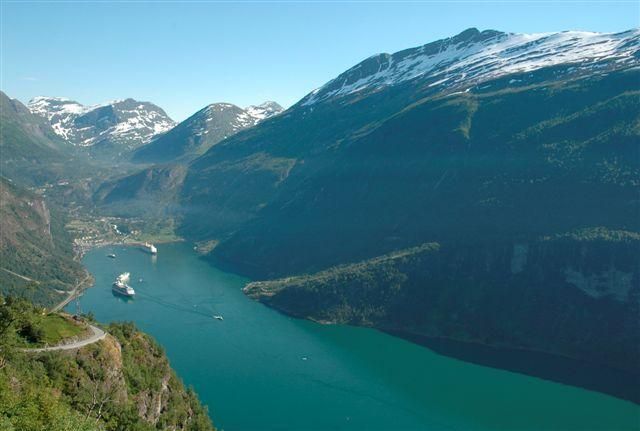 Am morgen wollen wir noch eine Schifffahrt auf dem Geiranger machen. Doch die Schiffe sind bis nachmittags um 14.00 Uhr alle ausbesetzt. Also fahren wir weiter zum Dalsnibba und haben eine wunderschöne Aussicht über Geiranger und den Fjord. Wir essen zu Mittag und fahren danach Richtung Styn. Die Fahrt ist wunderschön wir sehen viele Bergseen, es hat Schneefelder und auch ein Sommerskicenter. Wir fahren wieder hinunter an den Nordfjord nach Nordfjordeid und danach Richtung Sandane. Abends um 18.00 Uhr sind wir dann in Sandane, gehen an den Flughafen das Mietauto abgeben und fahren zu zehnt in unserem Womo zu einem Vetter in der Nähe von Sandane. Die befreundete Familie bleibt 1 Tag da.