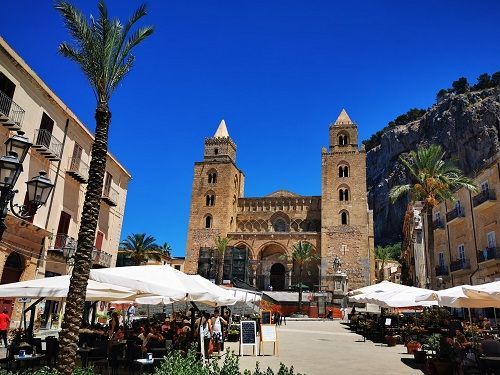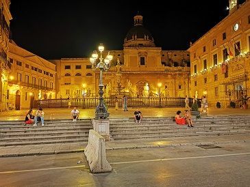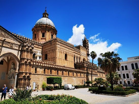 Nach dem Frühstück in unserem Hotel machen wir uns zu Fuss auf den Weg zum Zentrum; wir haben heute einen Hopp on und Hopp off Bus gebucht. So können wir die Sehenswürdigkeiten der Stadt mit einem offenen Panoramabus erkunden und aussteigen, wann es uns beliebt. Als erstes fahren wir eine Runde, um einen Überblick über die vielen alten Gebäude von Palermo zu erhalten. Dank dem Fahrtwind ist die Hitze erträglich. Wir machen einen Stopp an der Kathedrale von Palermo an der Piazza Sette Angeli und flanieren von der Villa Bonanno zum Stadttor Porta Nova, den Palazzo Reale, die Admiralskirche sehen wir uns von aussen an, das Teatro Massimo ebenfalls. Auch hier spazieren wir über die prächtige Piazza mit Brunnen. Auf dem Ballaromarkt gibt es viel frisches Gemüse und Fisch und auch sizilianische Spezialitäten zum Geniessen. Ein Spaziergang durch den botanischen Garten lassen wir fallen, stattdessen gönnen wir uns ein eiskaltes Getränk aus Orangen und Zitronensaft in einem Café im Schatten. In der 2. Rundfahrt zeigt man uns die alten Villen der Stadt. Danach machen wir uns nochmals auf zur Piazza Canti und geniessen ein Abendessen draussen auf der Terrasse. In einer Bar spielen sizilianische Jungs ein paar großartige Musikstücke, wir bleiben stecken und schauen zu, es gefällt uns super. War es tagsüber heiss, so ist der Abend herrlich, die Luft ist sehr angenehm.