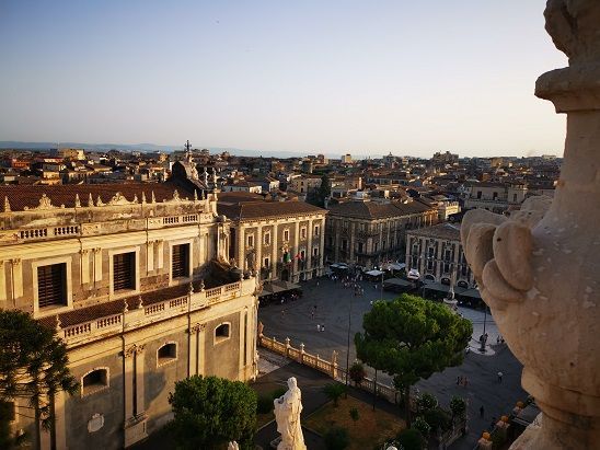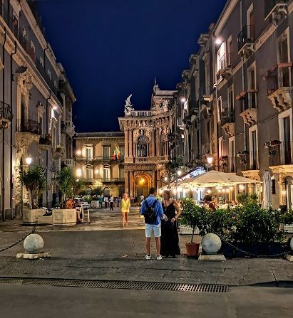 Heute steht der Besuch der Altstadt von Syrakus auf der Ortygia Halbinsel auf unserem Reiseprogramm. Das Städtchen ist genial schön, wir spazieren durch die alten Gassen und schauen uns die Kathedrale von Syrakus mit der Piazza an. Vom Apollontempel ist nicht mehr allzu viel zu sehen, die Sicht entlang des Meeres ist jedoch sehr schön und auch der Blick auf die Festung Castello Maniac beeindruckt uns alle. Es ist sehr heiss, wir suchen uns schattige Wege. Nach einer kurzen Rast mit Orangensaft und Granatapfelsaft fahren wir zurück zum Hotel. Der eigentliche Plan ist, im Hotelpool Abkühlung zu suchen. Leider ist dieser noch nicht von all den kleinen Lavasteinchen befreit, so müssen wir uns mit dem Blick auf das kühle Nass begnügen. Am späten Nachmittag machen wir uns nochmals auf den Weg nach Catania und fahren mit dem Treno Dotto durch die Strassen von Catania. Es ist eine eher holprige Angelegenheit, die Häuser sind gezeichnet durch den vielen Aschestaub des Ätna. Es gibt eine Pizza und eine Glace auf der Piazza del Duomo. Punkt 20.57 bricht der Ätna erneut aus und speit Asche auf Catania und die Umgebung. Wir flanieren durch die Gassen der Altstadt und geniessen die italienische Art Dolce fa niente. Es ist bereits nach Mitternacht, als wir zurück in unserem Hotel sind.