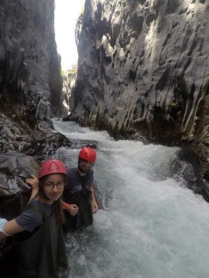 Für heute stehen die Zeichen auf einen nassen Ausflug. Wir planen, die Schlucht von Altantara mit Gummihosen und Helm zu erkunden. Der Ausflug ist der Hammer, wir kämpfen uns durch die Fluten, welche uns teilweise bis zu den Hüften reicht. Einige unserer Gruppe halten den Fluten nicht stand, der Alcantarafluss nimmt sie mit. Es entpuppt sich als ein lustiges Abenteuer, das Wasser ist eiskalt, der Spassfaktor ist hoch. 2 Stunden dauert der Ausflug, danach stillen wir unseren Durst im Restaurant und faulenzen ein wenig. Am späten Nachmittag fahren wir nach Taormina, einem sehr touristischen und malerischen Städtchen am Fuss des Ätna. Wir spazieren durch die Strassen und geniessen jedes schattige Plätzchen. Wir flanieren von einem Stadttor zum anderen, besuchen alle Kirchen und gönnen uns eine Abkühlung auf der Piazza IX Aprile. Gegen Abend gehen wir dann noch hinauf zum Teatro Greco und geniessen dieses alte Bauwerk in der Abendsonne. Einfach nur schön. Das Abendessen gibt es im pittoresken Restaurant Baronessa. Wir werden hier richtiggehend verwöhnt. Die Heimreise nach Catania dauert mehr als eine Stunde auf der Autobahn. So ist es bereits Mitternacht, als wir wieder im Hotel sind.